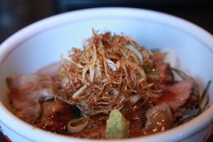 香り高いネギとわさびがトッピングされているので見た目よりもくどくなく、甘いタレが食欲をそそって、ご飯が進み女性でもペロリといけちゃいます♪